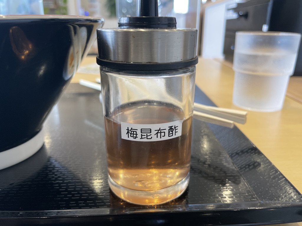 酢より梅感が先に感じられる!入れすぎても酢で咽せない。食べてる途中に必須の味変アイテムですな。