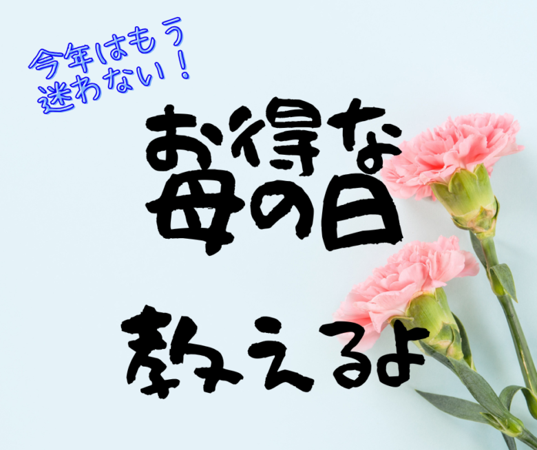 県内で行われている母の日のイベントは、通常よりお得が盛りだくさん。ぜひ参考にされてみてはいかがでしょうか。