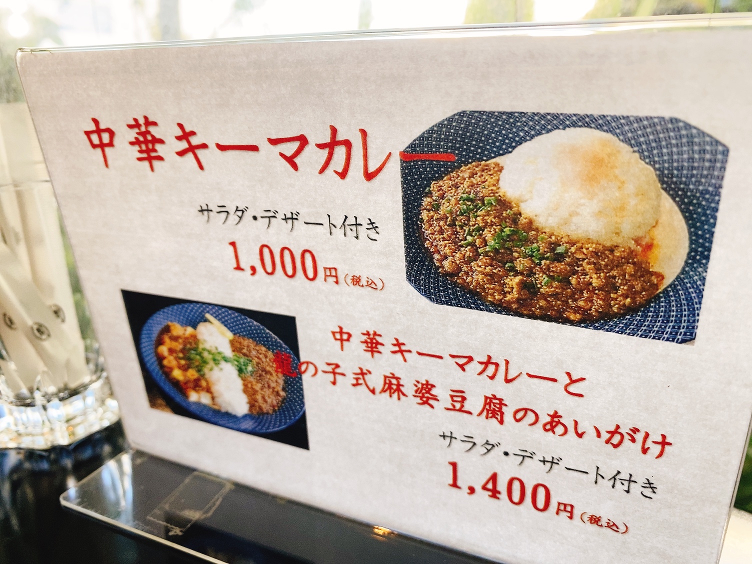 今回はボリュームよりも気になる直感を信じ、中華キーマカレーと龍の子式麻婆豆腐のあいがけに決めました。