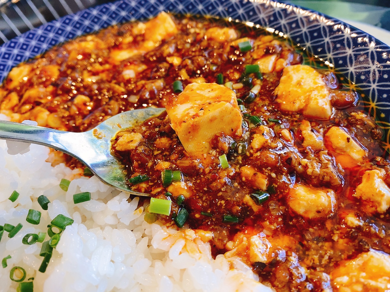 こちらも最初にやってくるのはラー油の辛さですが、麻婆豆腐との違いは、ひき肉と軟骨の食感を楽しめることとやはりほのかに感じるカレーの香り。