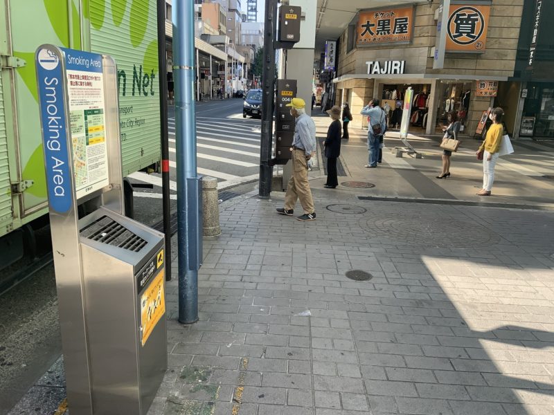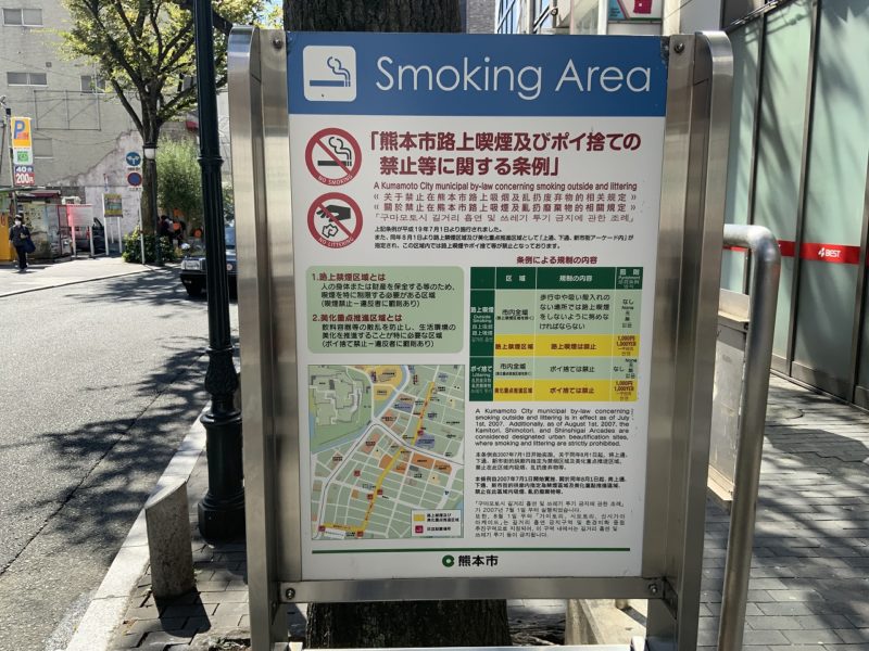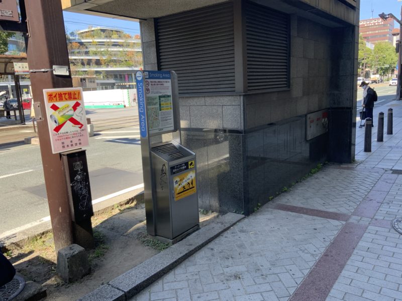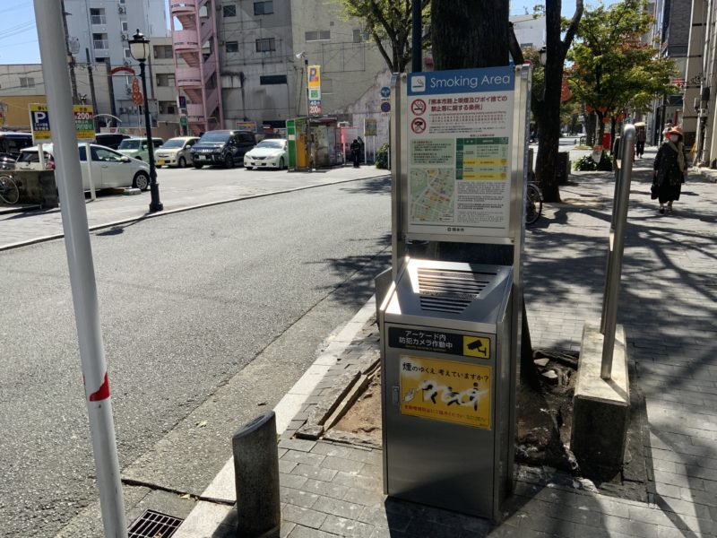 まずは新市街アーケードの入り口に、熊本市が設置している灰皿があります。