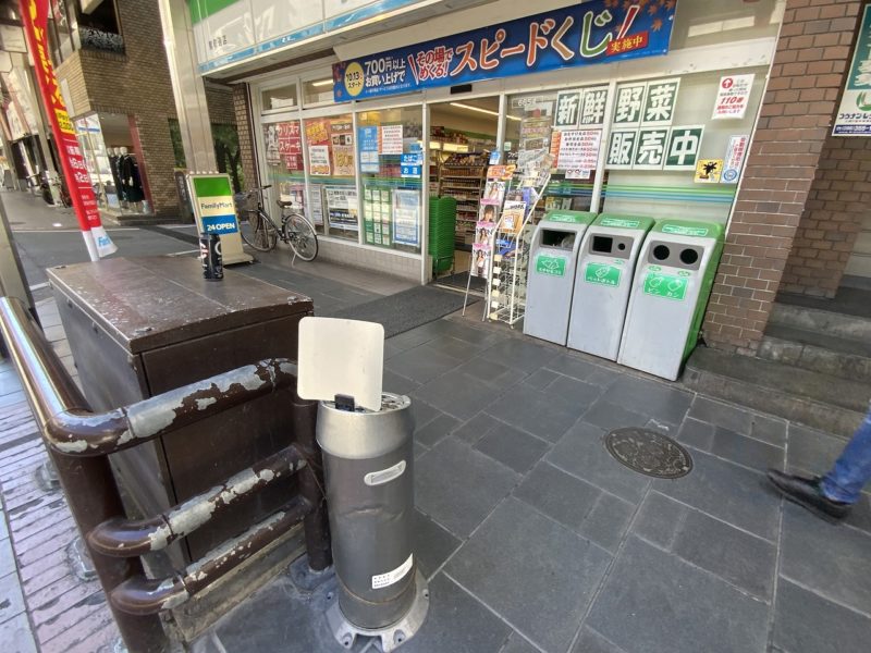 その先のファミリーマートの前に灰皿が設置してあります。