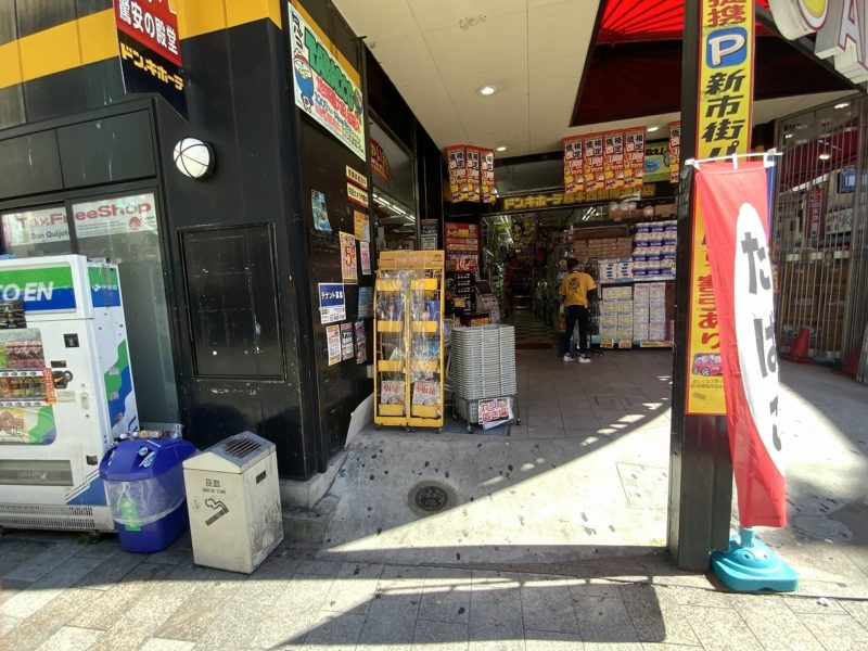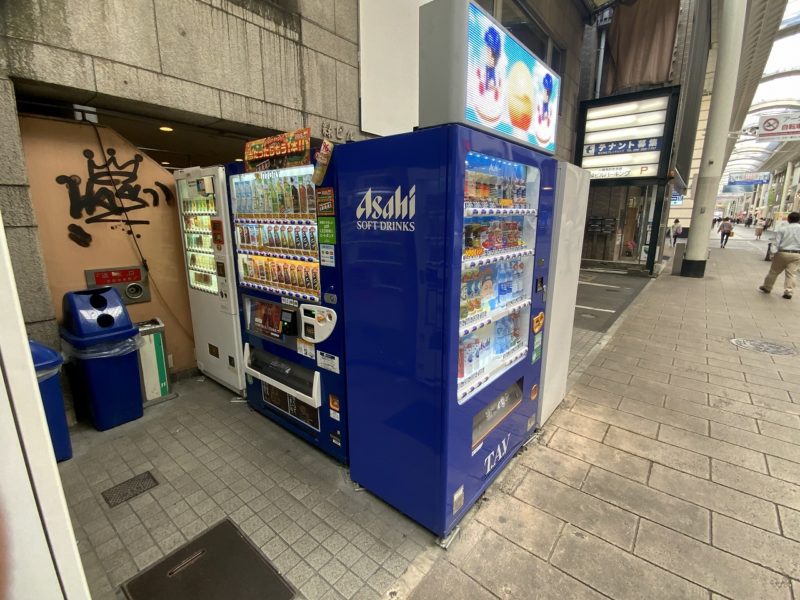 アーケード沿いでは、立体駐車場前の珍しいタバコの自動販売機やドリンクの自動販売機に囲まれた場所にもあります。