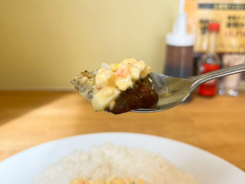 一気にカレーがマイルドに。ただまろやかになっただけでなく、マヨネーズやレモンによるちょっとした酸味がアクセントとなっていて、一気にメリハリのある味に。