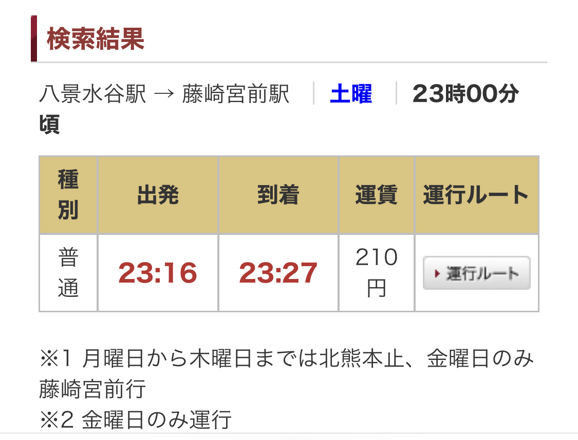 ちなみに終電の時間は平日・土曜も変わりません。今日のシンデレラタイムは23時16分です。