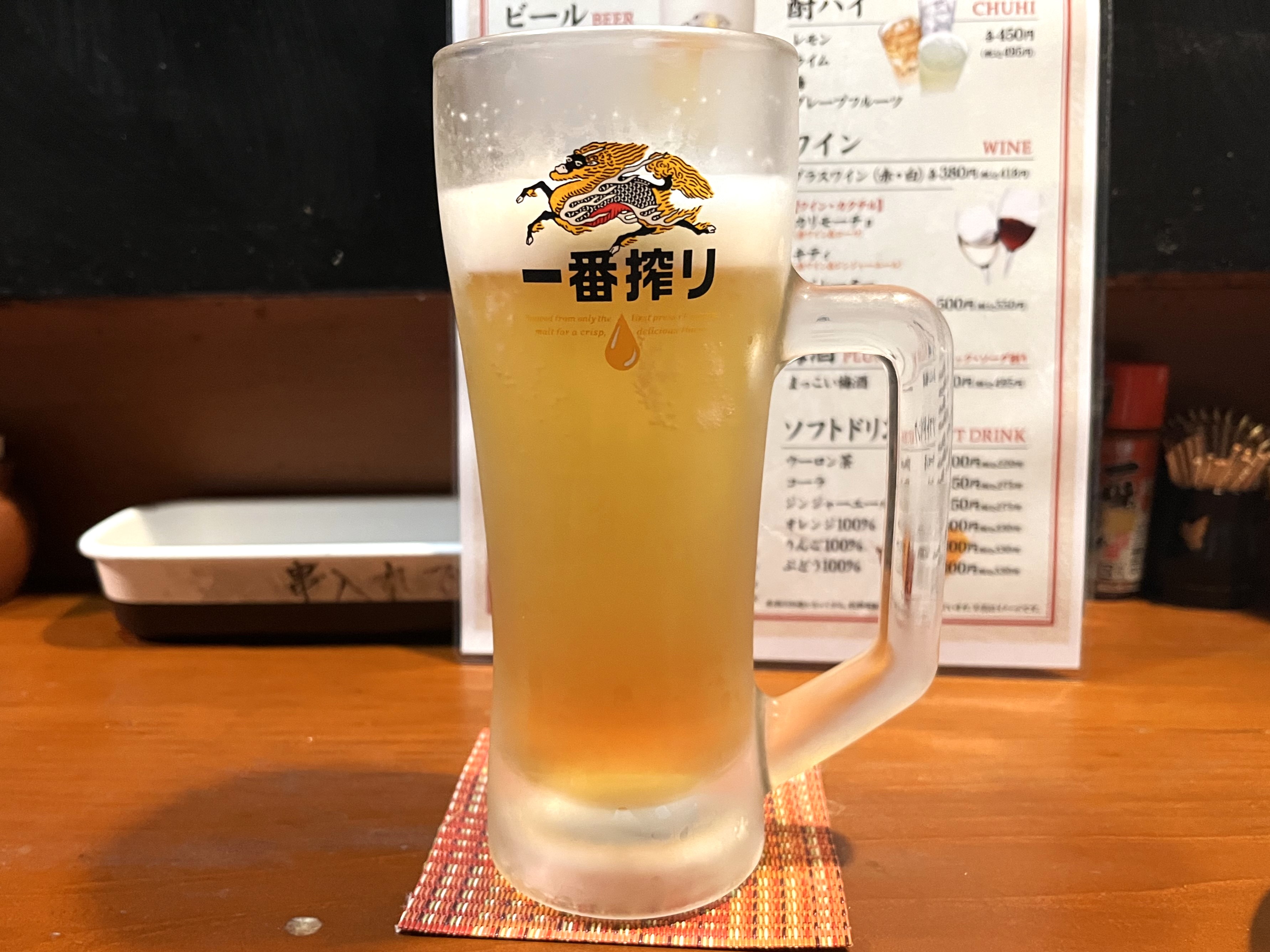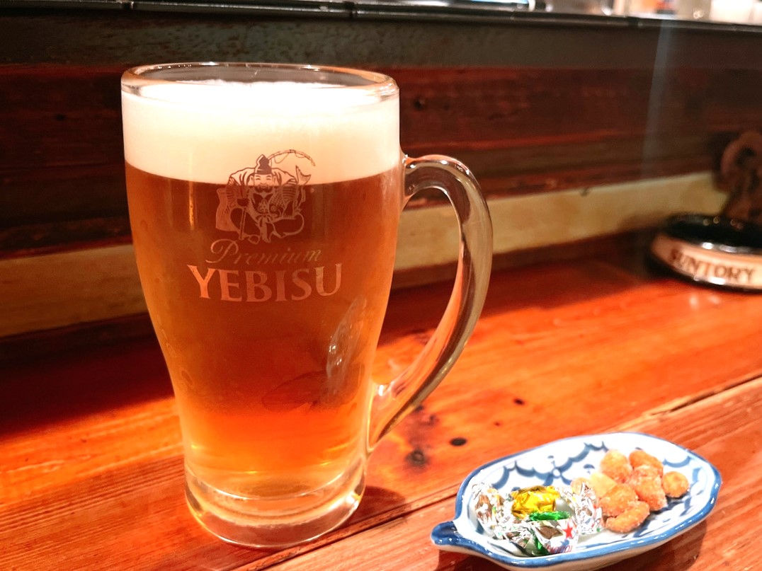 再びビールで乾杯!BARで生ビールが飲めるっていうだけでテンション上がります。おひとり様の新参者にも優しく、オーナーさんとお客さんと話しながらお酒を楽しみます。