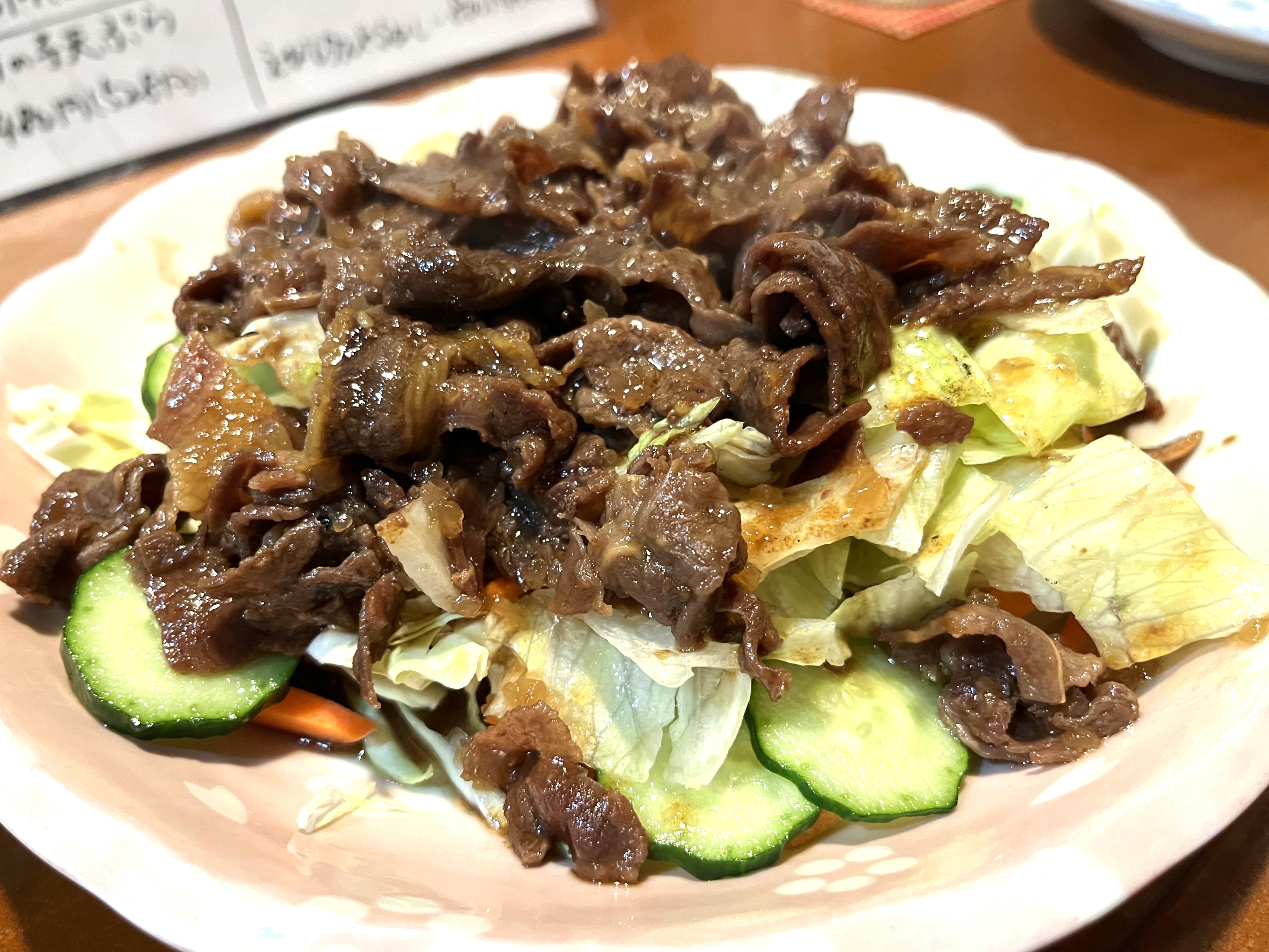 さて、注文したお料理の到着です。まずは野菜を。と思って頼んだお肉が乗ったサラダ(名前忘れました…)。