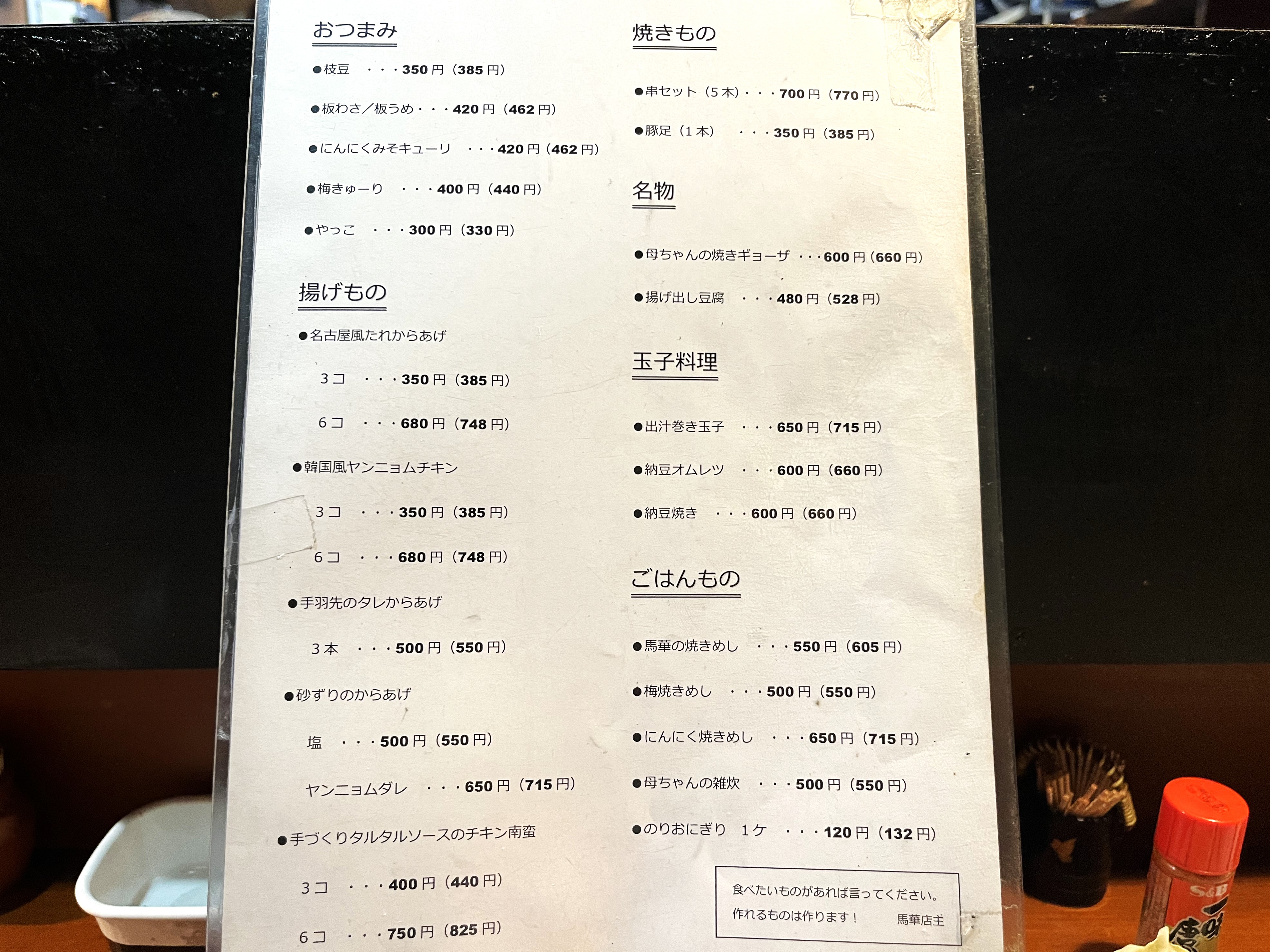 そうこうしながら1件目に選んだのはこちら「居酒屋 馬華」。八景水谷駅から程近くにあるこちらで食べ飲みしていきます!