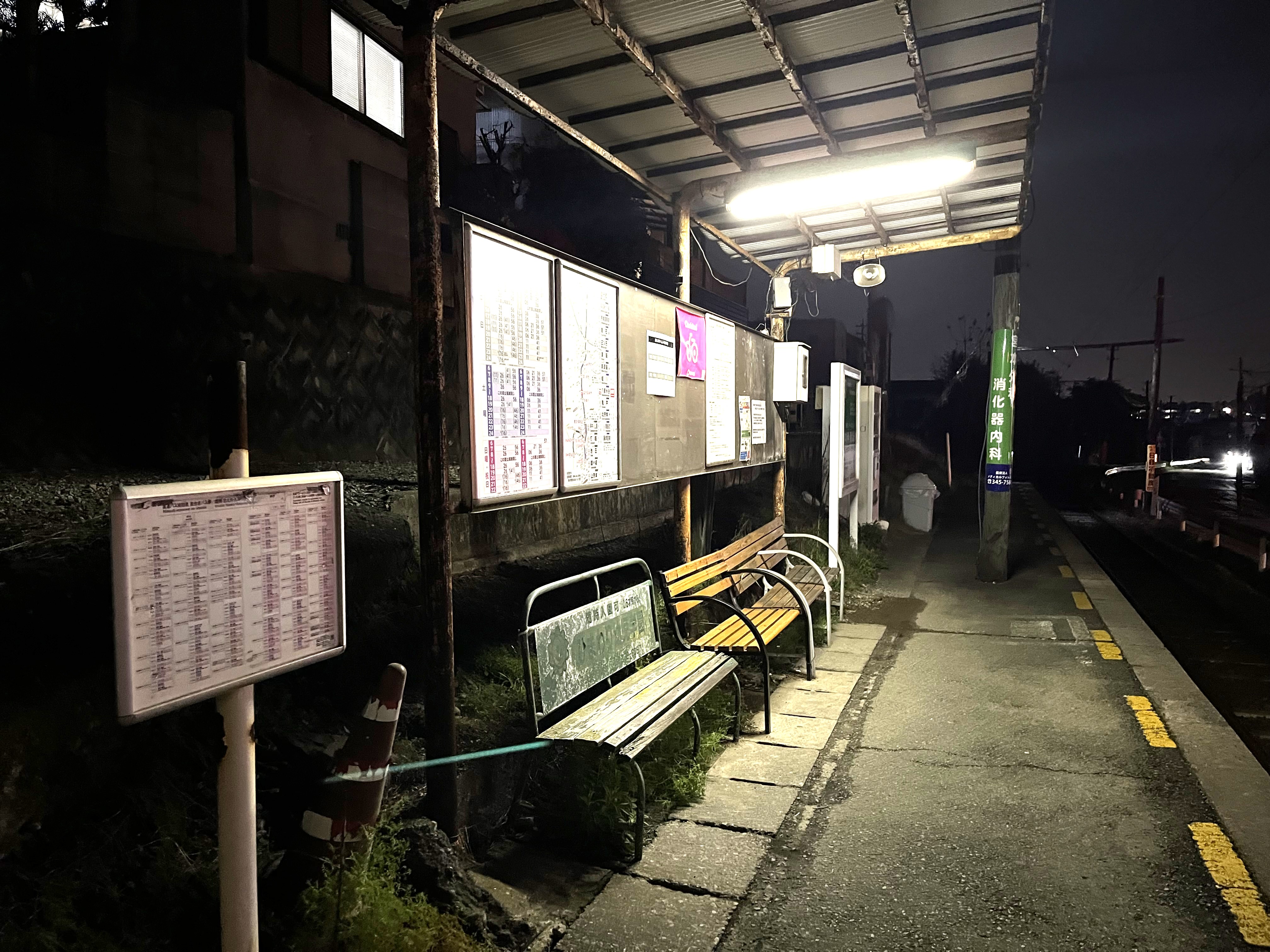ノスタルジックな駅で楽しかったプチ旅行を噛みしめながら電車を待ちます。