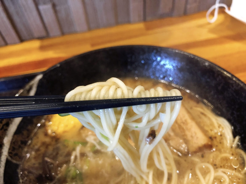 細目のストレート麺が濃い豚骨の風味をより一層引き立てており、麺最高!
