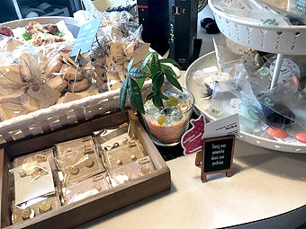 レジの横には、ハンドメイドアクセサリーやお菓子が販売。