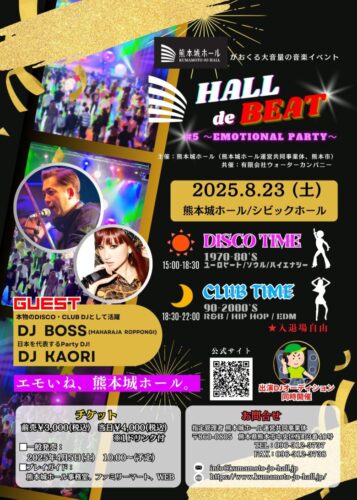 【8月23日開催!】エモ足りてる?!熊本城ホールで「ディスコ&クラブ」が楽しめるイベントが「HALL de BEAT」が開催されるってよ!【熊本市中央区】