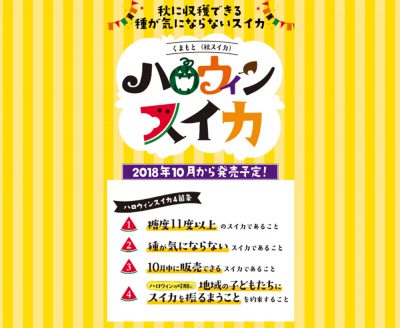 10月末、秋の風物詩として日本でも定着してきた「ハロウィン」。夏野菜でありながら、10月に出荷できるというスイカが登場!その名も「ハロウィンスイカ」!熊本では「クラッシーノ・マルシェ」で販売されます!