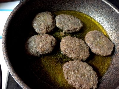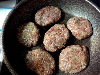 「焼ける、焼ける。ミンチ肉からでる油で十分だよ」