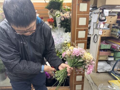 「これ、いただいたお花なんですが、花束にしていただくことできますか?」