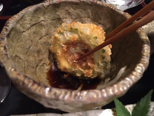 茶碗蒸しの中にはゴマ豆腐が入っていたり、こんにゃくを大葉で巻いたフライがあったりと、珍しいものも多く、どれも上品な味付けでおいしい!