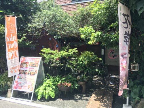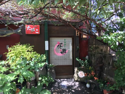 新町の「花遊」は緑に覆われており、看板や幟がなければ通りすぎてしまいそうな、ひっそりとしたお店。