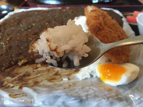 早速食べてみると、5時間も丁寧に煮込まれたという、牛すじカレーは濃厚で深い味!白ご飯もおいしいし、カツもジューシーだし、