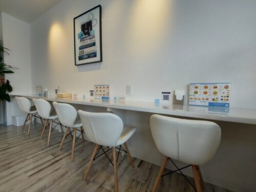 入口の左手側、お持ち帰りのお客様のための待機スペースもございました。