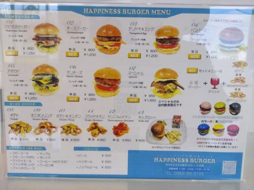 HAPPINESS BURGERのメニューがこちら。