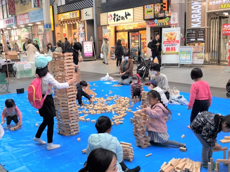 自然のぬくもりを感じられる木のおもちゃコーナーは、いろんな遊び方ができるので、小さな子どもたちから、小学生や大人まで、みんなで楽しめます。