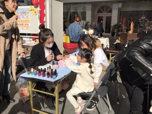 ベルェベル美容専門学校の学生さんたちによる、ヘアセットやネイルの無料体験コーナーもあって、子どもたちはとっても嬉しそう!