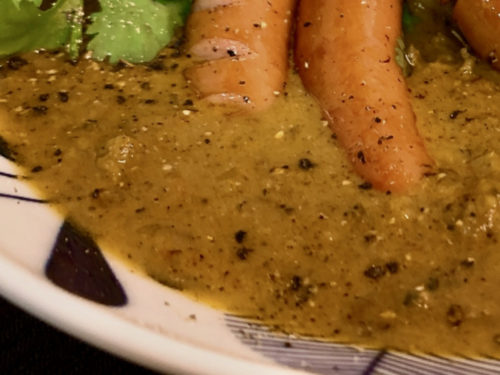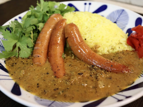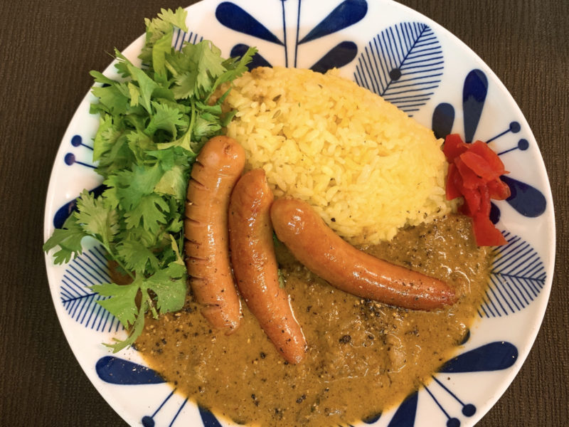 ウインナーはしっかり燻された大人の味。パクチーとも相性が良く、クセになる味わいのカレーでした。
