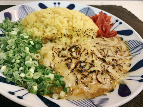 こちらも見た目のインパクト充分な、青ねぎ&焼きチーズのカレー。