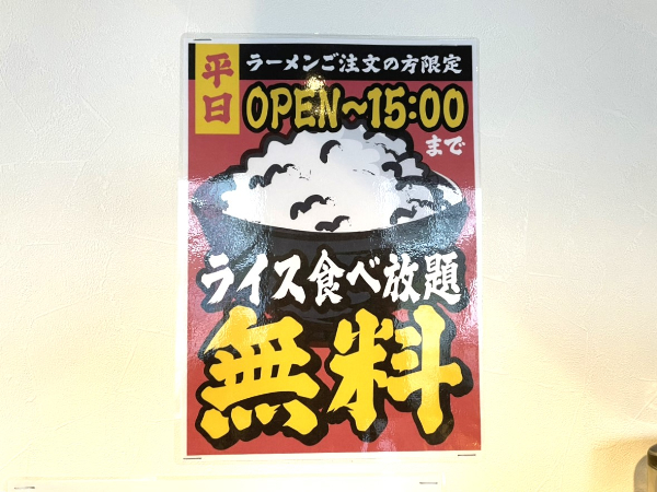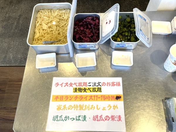 菊陽町同様のがっつりしたラーメンは健在でした。さらに、平日の昼はライスと漬物が食べ放題とパワーアップしています!