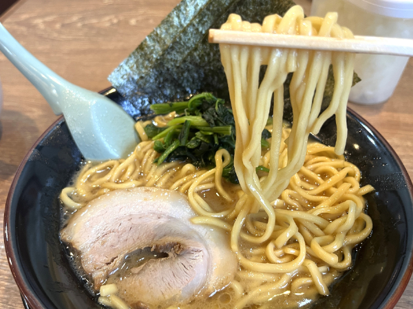 ガツンとパンチのあるスープが人気の家系ラーメン。