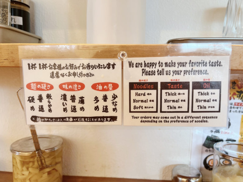 初めての来店なので、味の濃さ・油の量は普通をセレクト。