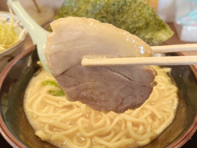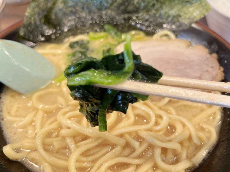 家系ラーメンの定番である豚骨醤油ラーメンは濃い味で、インパクトのあるラーメンでした。