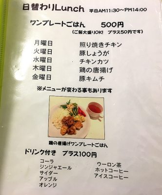 日替わりランチはお得なワンプレートのワンコインランチ!