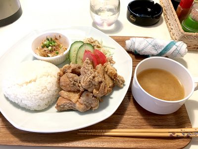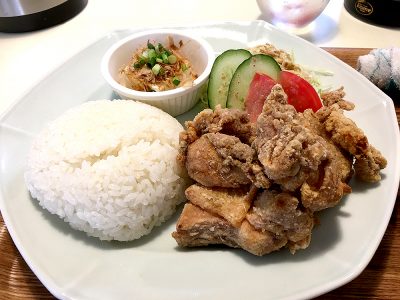 今回のワンプレートランチには、鶏の唐揚げ・サラダ・冷奴・お味噌汁・ライスという組み合わせ。