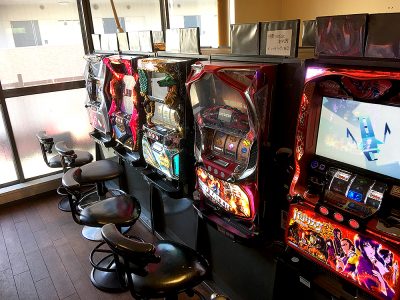 なんとカフェスペースの奥の方には、ずらっと並べられたスロットマシンが!