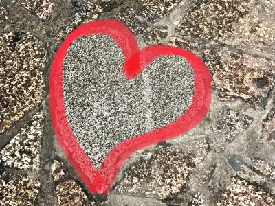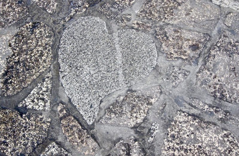 普通の石の間に、ひとつだけハート形の石が入っています。少しだけいびつなハートです。