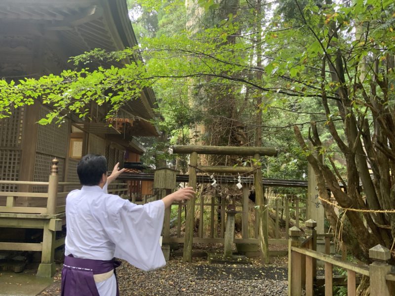 そうですね。自然信仰として、このご神木にお祈りしていた人たちがいたということです。それがいつからか信仰となり神社ができたんでしょう。そもそも神道には神社神道と古神道というのがあって、うちは古神道として…。