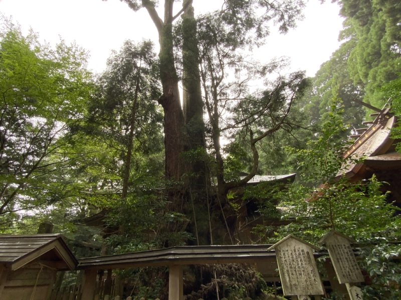 確かに、近づいて御神木を見ると、地面に近い根本の部分がかなり太い。しかもご神木から別の樹が映えてきている様子も伺えます。それが11代目になるそうです。