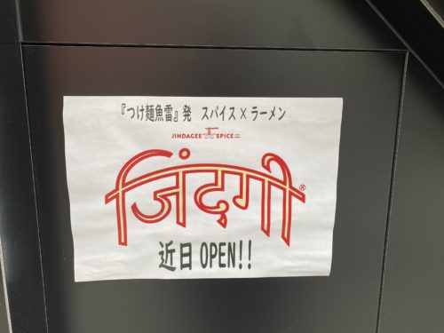 熊本電鉄「藤崎宮駅」の近くにある「つけ麺魚雷」からスパイスラーメンのお店「ジンダギースパイス」がオープンと張り紙がありました。