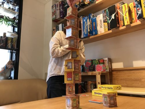 たくさんのボードゲームに囲まれるカフェ
