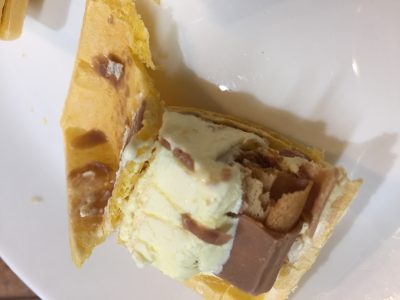 実際食べてみると、味はさることながら食感が楽しい!バニラアイスが柔らかいからルマンドのザクザク感が強調される!