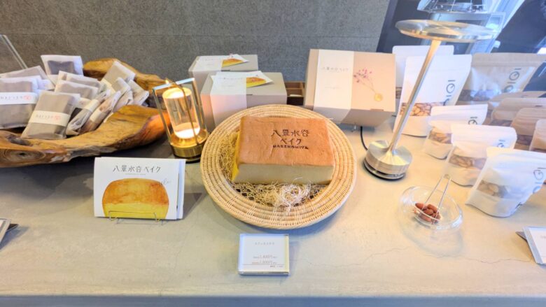 手前のスペースには、焙煎した香ばしいアーモンドや、姉妹店である「八景水谷ベイク」の人気商品も並びます。