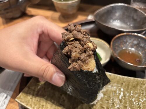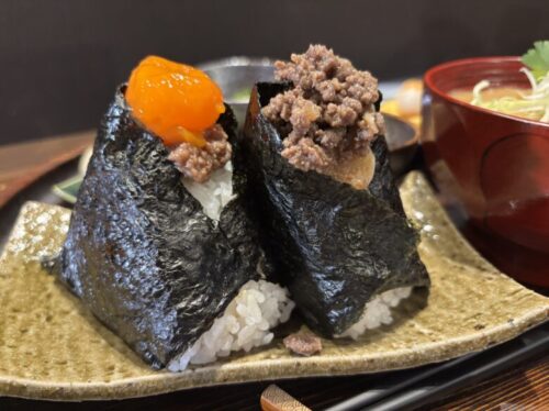 そしてこちらが「馬肉にんにく味噌むすび」です。