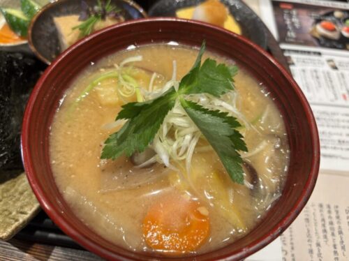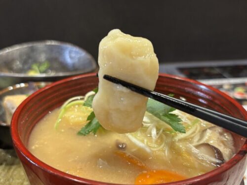 こちらは「選べる味のだご汁」で、味は”まぼろしの味噌「生」米麦あわせ”。