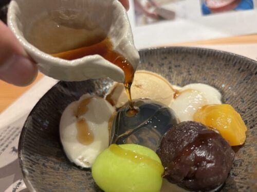 「白玉クリームあんみつ山内醤油みたらし餡」