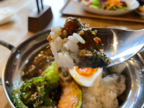 どれもこれも魅力ですが、カレー大好きな私は、スパイスポークカレーをいただいてみることに…