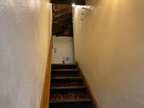 1階右手にある細い階段を上がった2階のスペースが、食事をする場所になります。