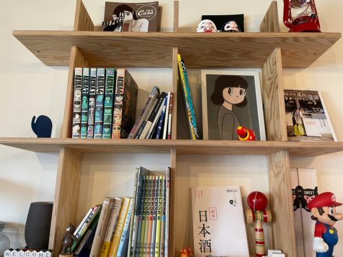 本棚には、「風の谷のナウシカ」や「AKIRA」など…本のラインナップを見るのも楽しい時間です。