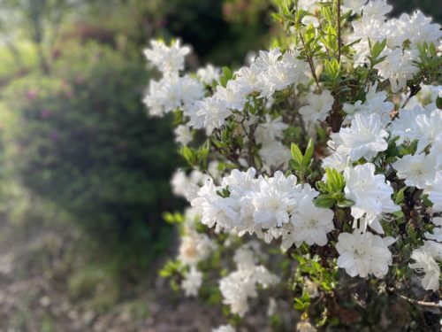 白が夕陽に映えていました。つつじって古臭いなと若い頃は思っていましたが、最近ではキラキラした花より落ち着くなーと感じます。