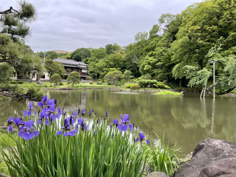 季節は5月の連休明け、園内のあちこちに菖蒲が咲いています。